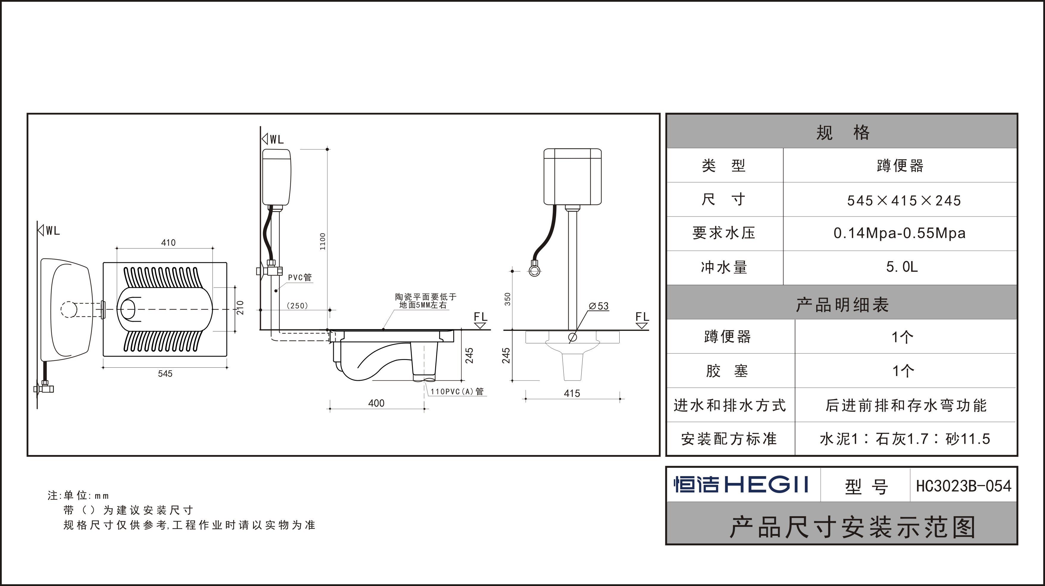 HC3023B-054導(dǎo)流導(dǎo)壓蹲便器